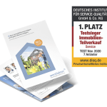 Das Deutsche Institut für Servicequalität (DISQ) hat sieben Anbieter des Immobilien-Teilverkaufs im Bereich Service getestet. Hierbei ging wertfaktor klar als Sieger hervor! Vertrauen Sie der Nr. 1 beim Immobilien-Teilverkauf.